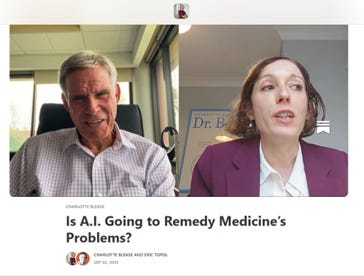 It was terrific to talk with Eric Topol, MD today via livestream about my new book, Dr Bot — coming out on 9 September. I’m so grateful for Dr Topol's thoughtful questions.